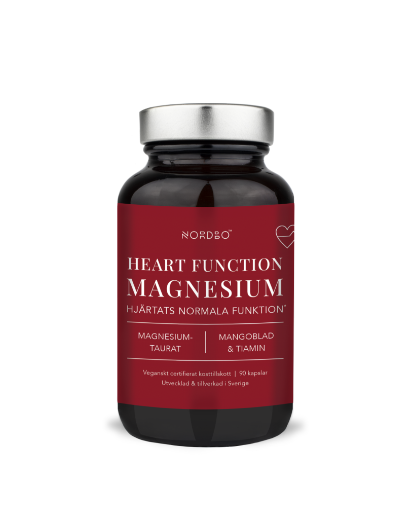Nordbo Heart Function Magnesium on kehitetty tukemaan sydämen normaalia toimintaa, ja se sisältää magnesiumtauraattia, mangolehtiuutetta ja B1-vitamiinia (tiamiinia).
