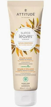 Attitude Volume & Shine -tuuheuttava hoitoaine sisältää soijaproteiinia ja karpalouutetta. Ne yhdessä saavat hiukset tuntumaan paksuilta ja kiiltäviltä.