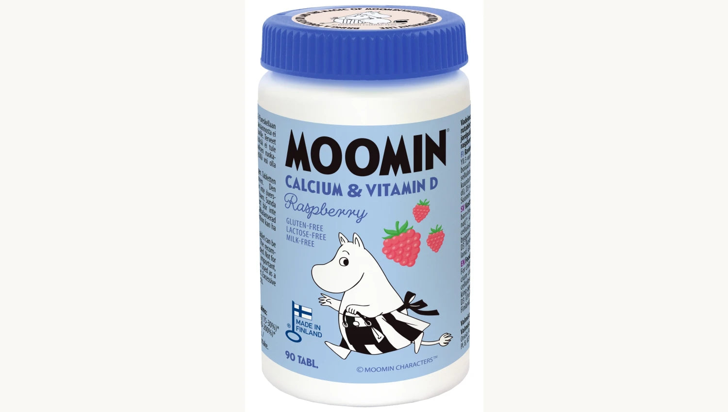 Moomin Kalsium & D-vitamiini vadelma purutabletti, 90tabl